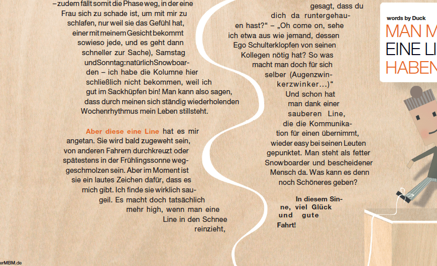Eine Linie in den Schnee ziehen macht mehr high, als eine Linie Schnee die Nase raufzuziehen. Man muss eine Linie haben weiterlesen